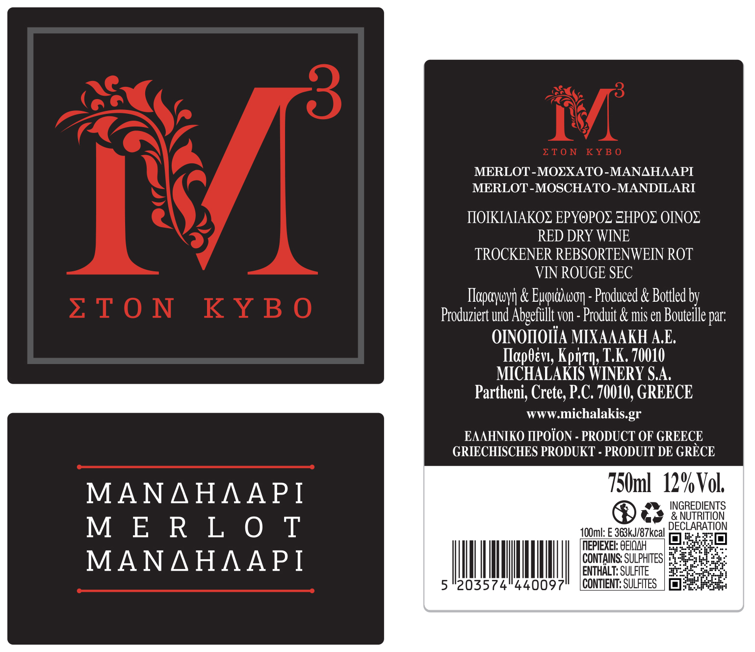 Varietal Composition: Merlot, Moschato, Mandilari Style: Dry Red Hand Harvest: Beginning of August until middle of September. Alcohol Content: 12% by Vol. Vinification: Classic red wine vinification for each variety separately in stainless steel tanks